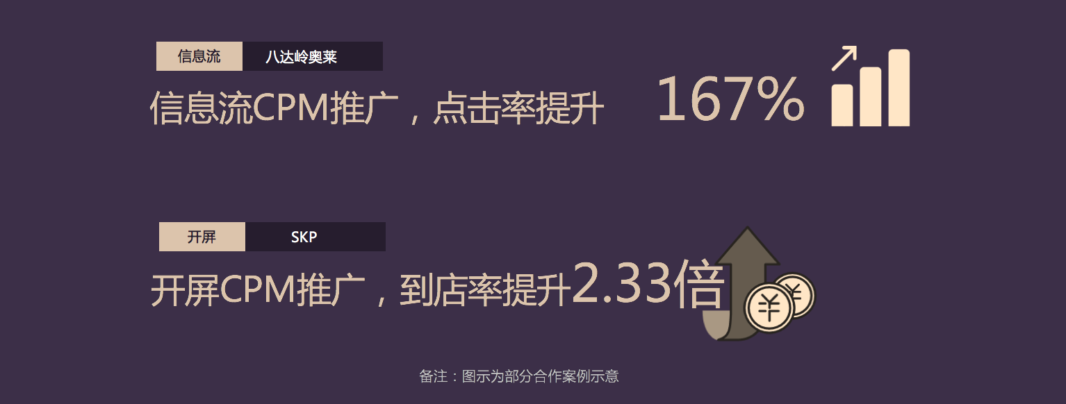 引入大数据分析后,通过多重定向及优化,结合双频次曝光展现,实现同等曝光量级下点击和到店的大幅提升